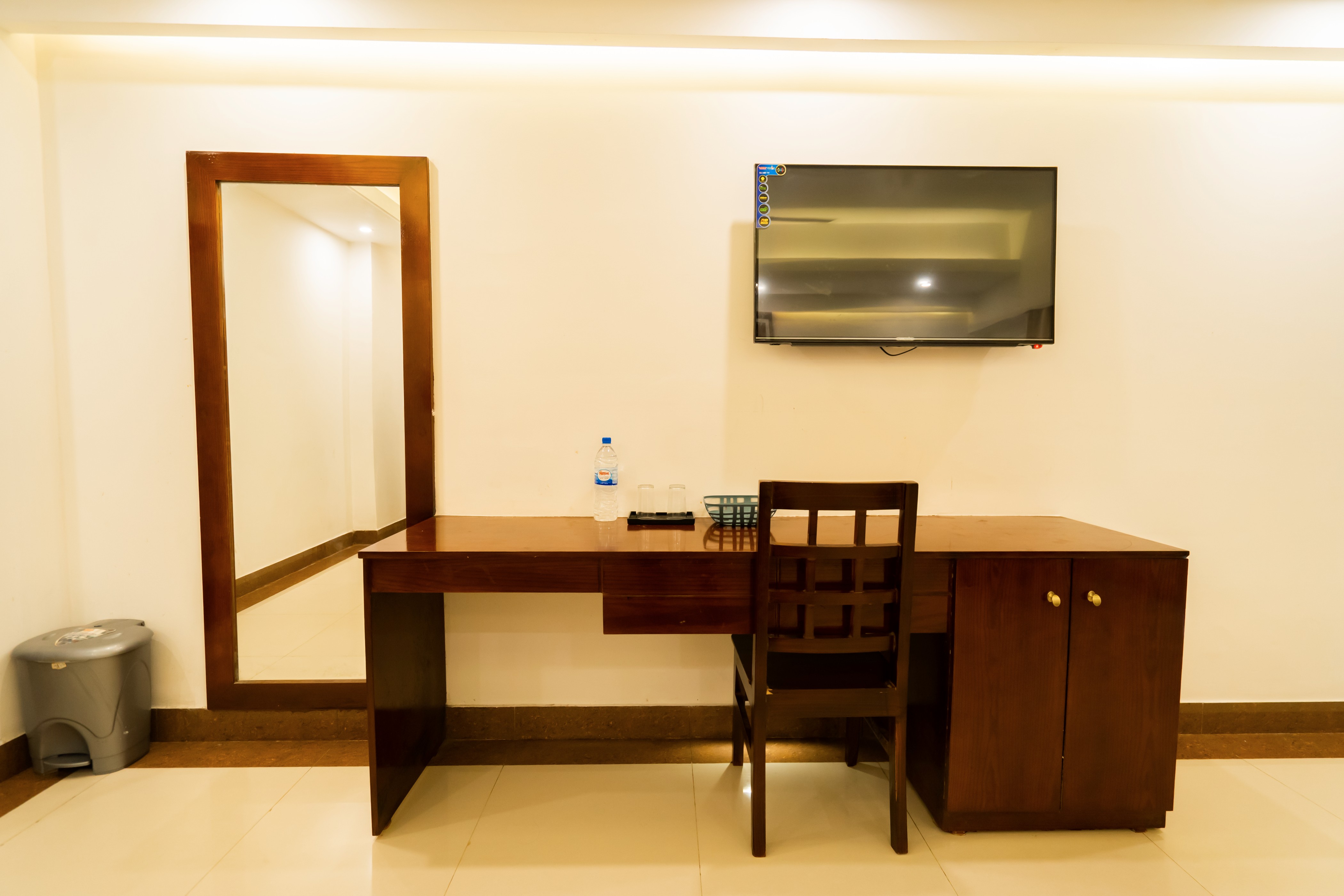 Our "Deluxe Couple" rooms are great for couples and newlyweds. This room has a private large balcony, a bathroom. Each room has an AC, geyser,Excellent Interior Design with Romantic Lighting, TV, Wi-Fi, telephone, work desk with chair, sofa and large cabinet.